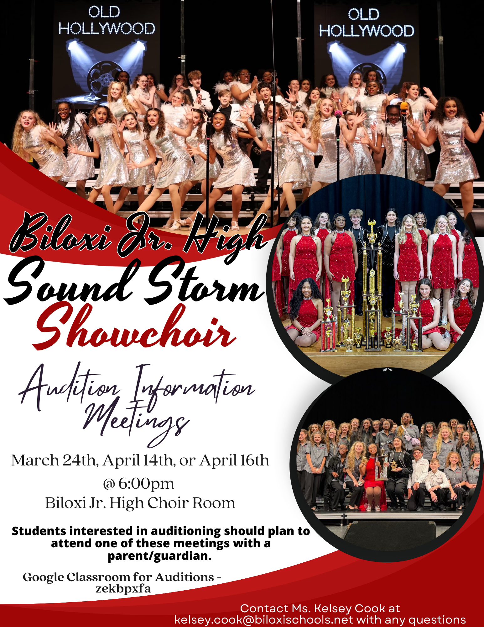 Auditions for the Award-Winning Sound Storm Showchoir are coming! Do you love to sing, dance, and perform? Come be part of something special at Biloxi Jr. High!We’re kicking off audition season wit...