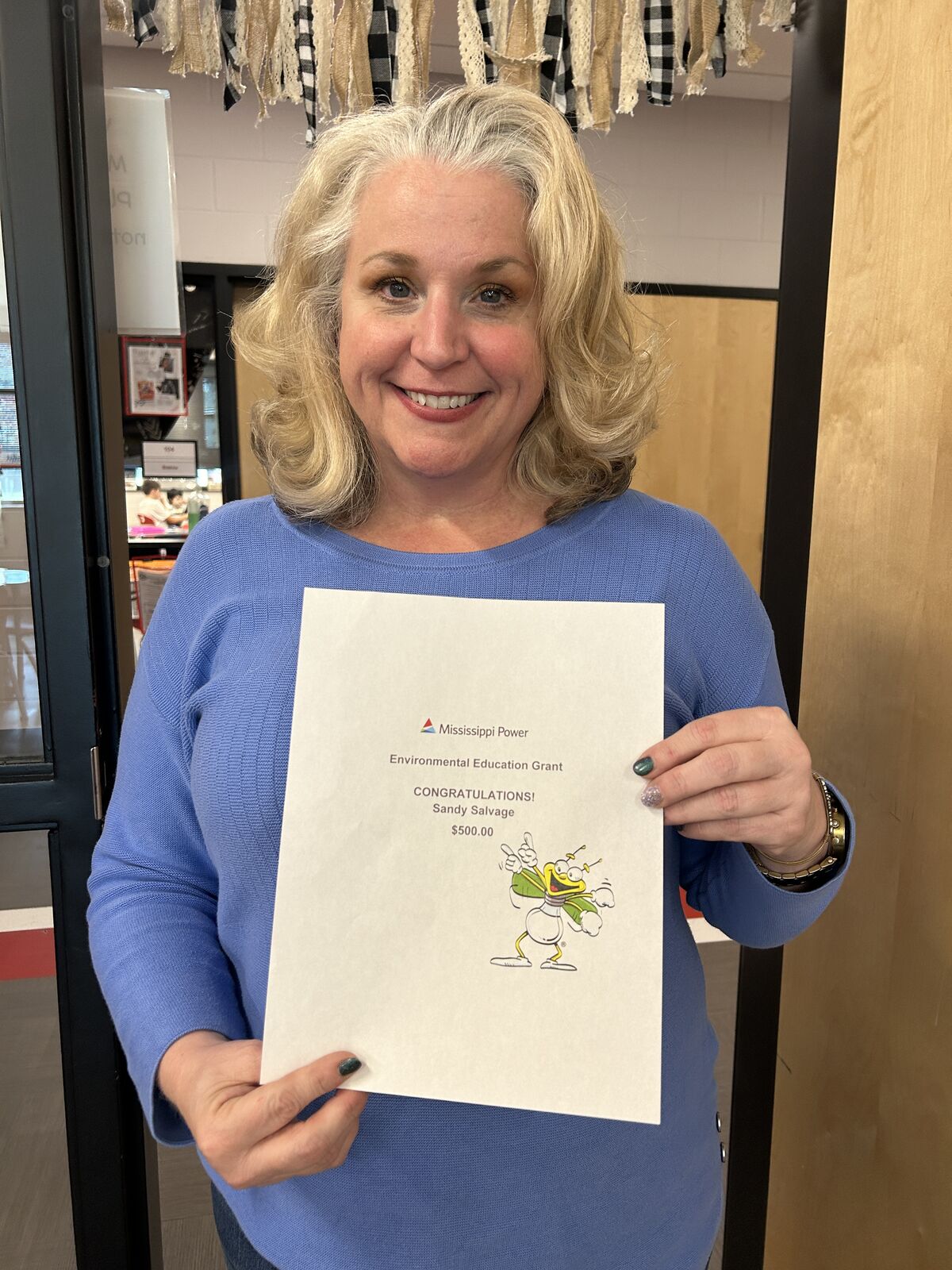 Exciting news! Ms. Sandy Salvage, a 7th grade science teacher, was awarded a $500 Evnironmental Education Grant from Mississippi Power. Ms. Salvage is a creative and innovative educator who consis...